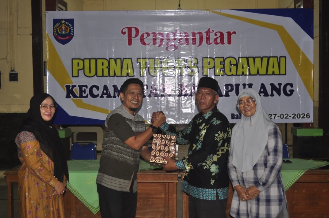 Balapulang, 27 Februari 2026 - Suasana haru dan penuh kebersamaan menyelimuti Pendopo Kantor Kecamatan Balapulang pada Jumat sore, 27 Februari 2026. Pegawai dan seluruh jajaran Kecamatan Balapulang menggelar acara Pelepasan Purna Tugas sekaligus Buka Bersama bagi Bapak Wahyu, SKM., MM yang resmi memasuki masa purna tugas setelah mengabdi selama kurang lebih 37 tahun di lingkungan Pemerintahan Kabupaten Tegal.